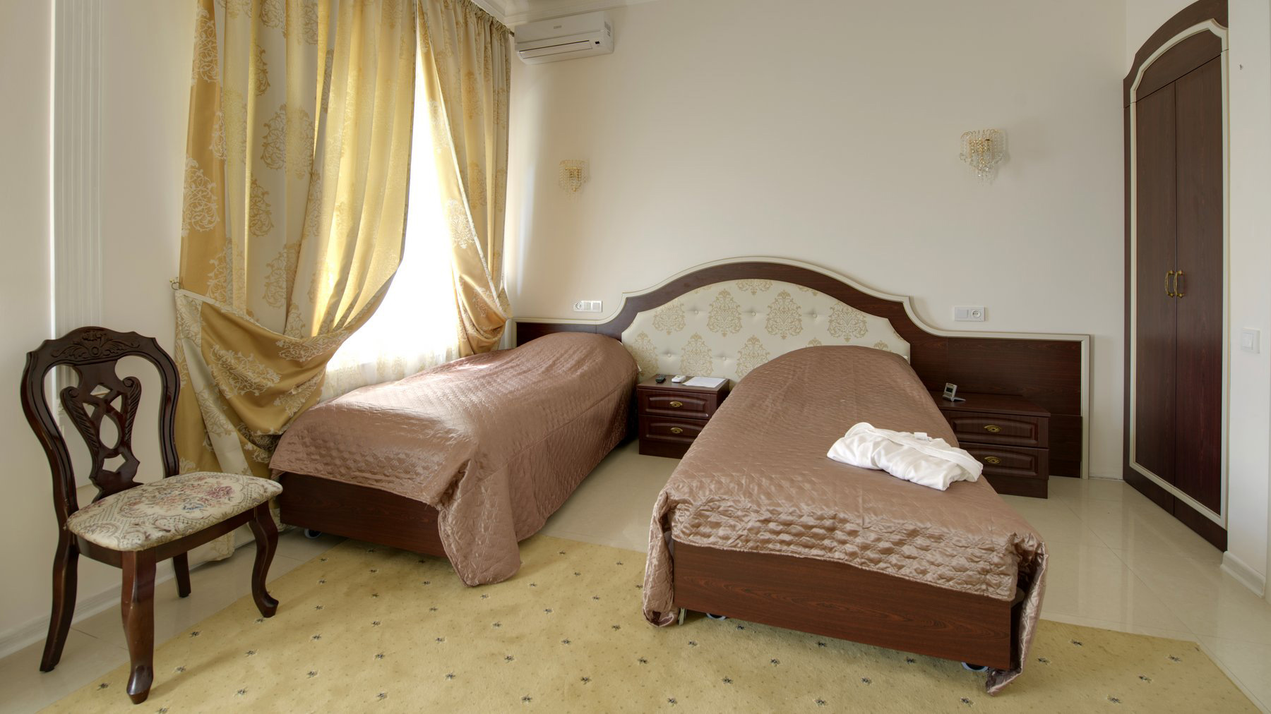 - Размер кровати/-ей: 1 большая двуспальная кровать или 2 односпальные кровати.
